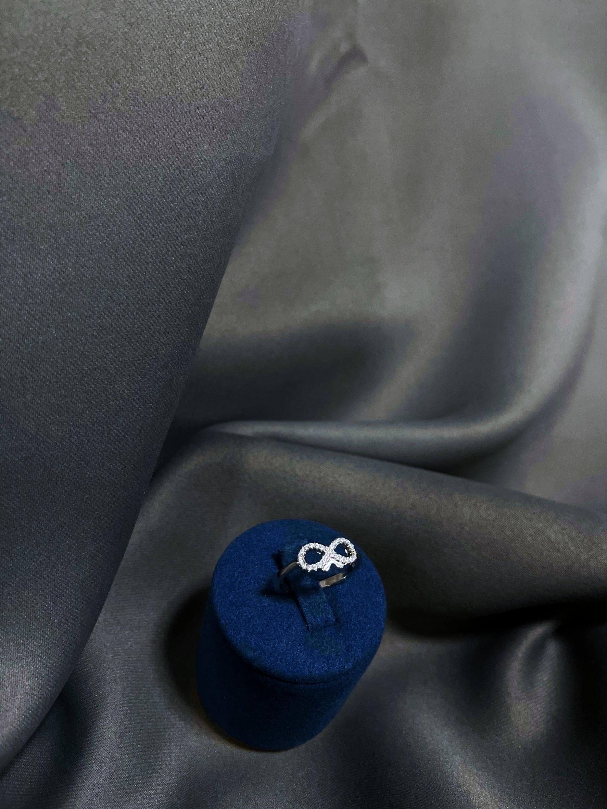 Der Unendlichkeitsring aus 925er Silber, veredelt mit einer Platinlegierung, symbolisiert ewige Verbundenheit. Ein stilvolles Schmuckstück, das zeitlose Eleganz mit tiefem Sinn verbindet"