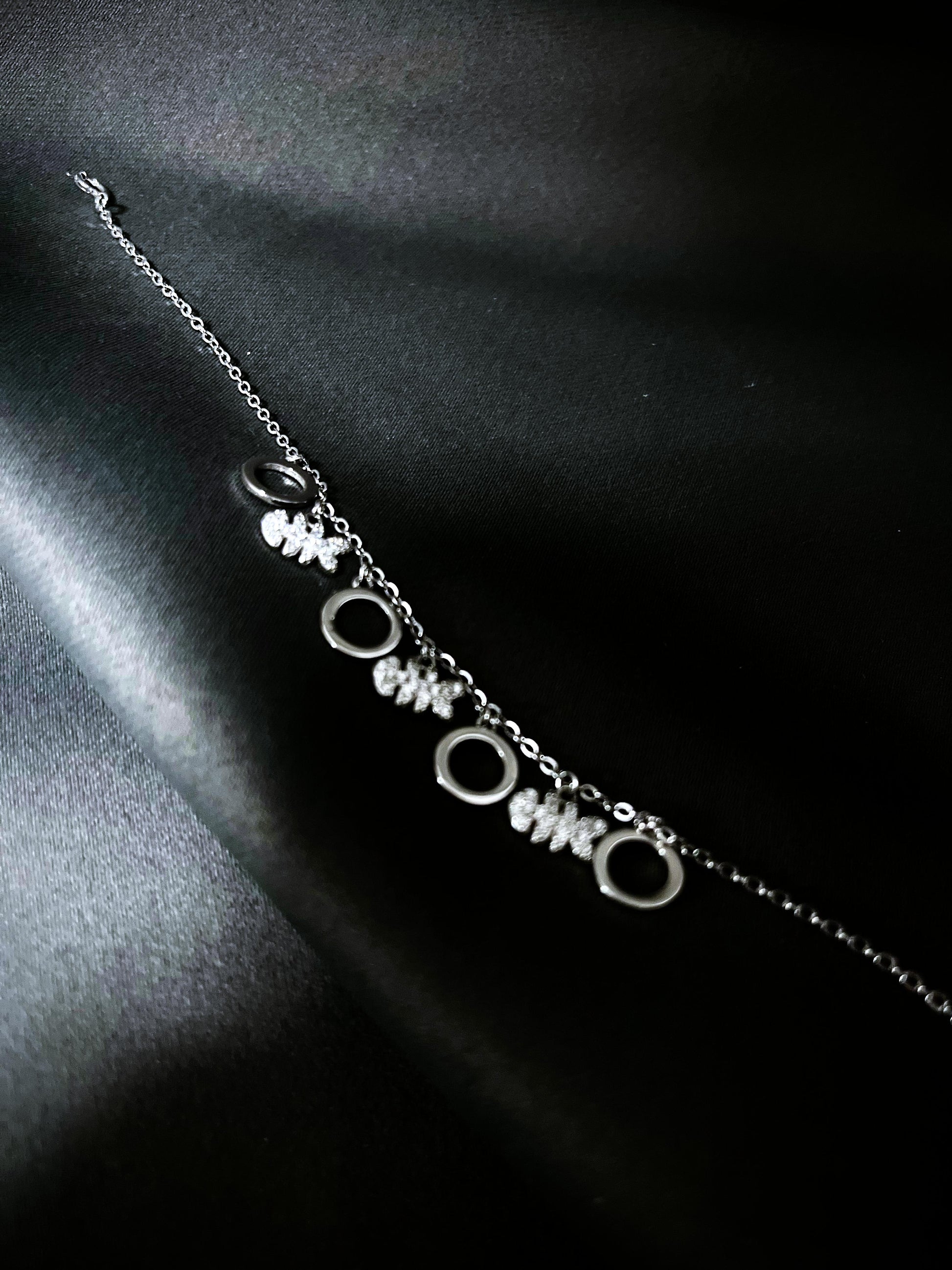 Das Fische & Ringe Armband aus 925er Silber mit Platinlegierung vereint das Symbol der Fische mit dem Ring der Unendlichkeit. Die Fische stehen für Anpassungsfähigkeit und Fluss, während der Ring Unendlichkeit symbolisiert. Zusammen bilden sie ein harmonisches Accessoire, das Balance und Verbundenheit ausdrückt.