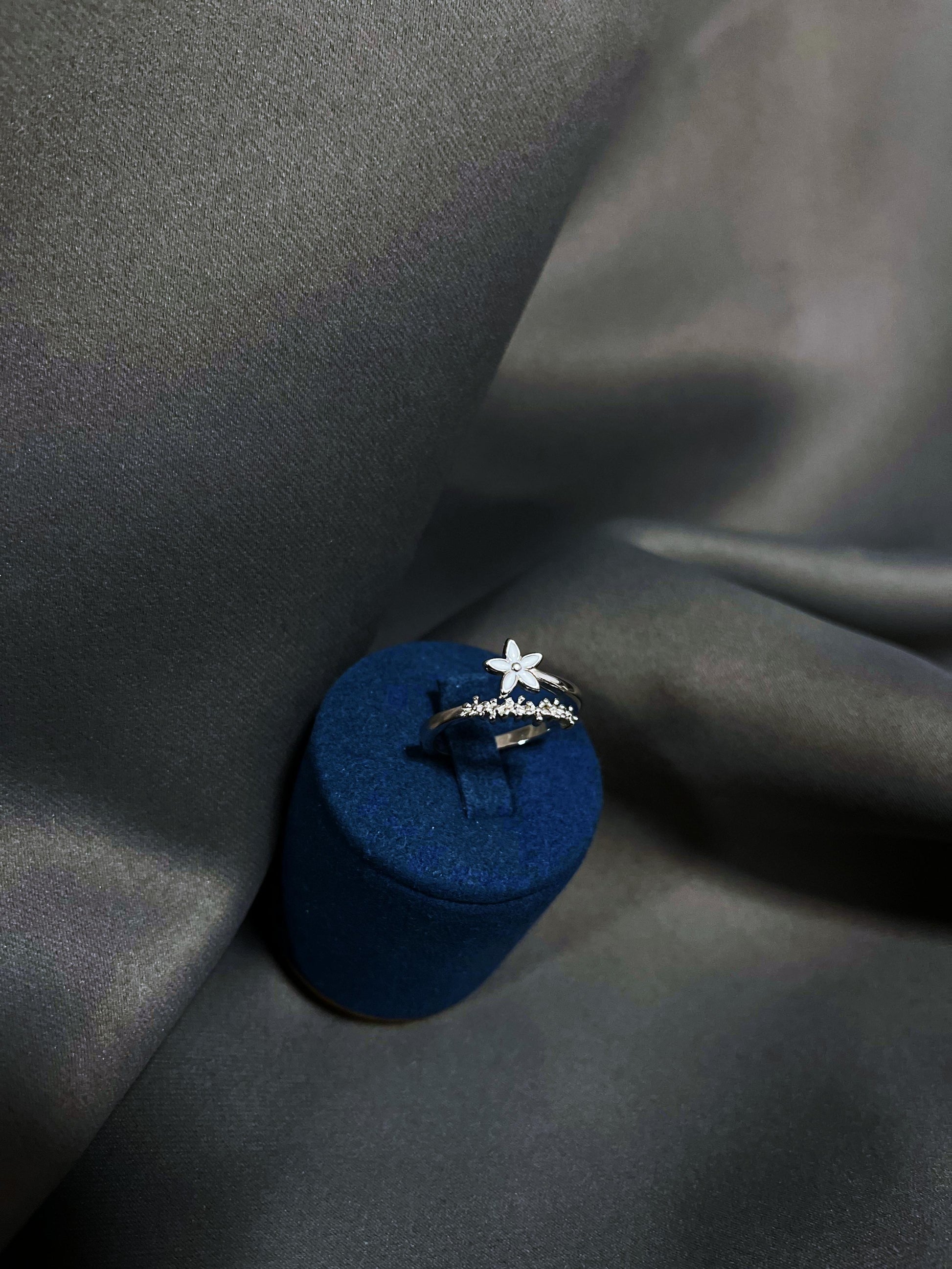 Der Blattring aus 925er Silber, inspiriert von den Wäldern Silvanias, vereint naturnahes Design mit einer edlen Platinlegierung.